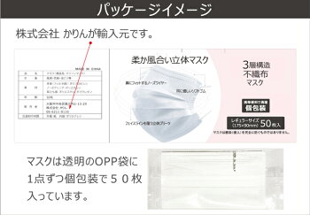 送料無料 個包装 マスク 50枚入 使い捨て 5/7から順次発送予定 不織布マスク 防護 花粉 風邪予防 3層構造 ホワイト 白 箱入 レギュラーサイズ 立体 花粉症 PM2.5対応 大人用 ますく 【メール便対応】